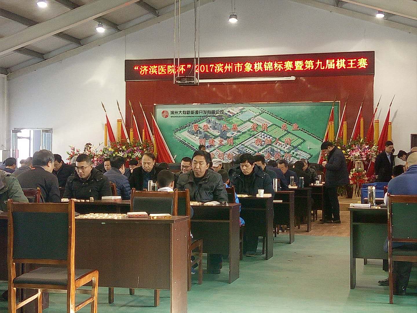由滨州市体育总会、滨州市智力运动协会、滨州市象棋协会主办,滨州市滨城区济滨医院,滨州大有新能源开发有限公司承办,山东国信建设集团有限公司,滨州市东鑫置业有限公司,滨州天安人寿保险公司,滨州市滨海医院,齐鲁晚报今日滨州,惠民兵圣服饰有限公司协办的“济滨医院杯”2017滨州市象棋锦标赛暨第九届棋王赛16日至17日在滨州大有新能源开发有限公司举行。
