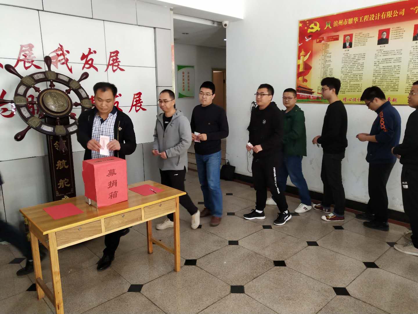 2018年4月22日,耀华集团旗下的滨州大有新能源开发有限公司化工生产一部职工李燕冰孩子不慎坠楼,生命危及,患难时刻见真情,耀华设计院于2018年4月27日上午迅速组织集体募捐活动,公司员工纷纷伸出援助之手,献上一份爱心。